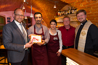 Und falls dann der Hunger kommt, gibt es ein vielfältiges und einfallsreiches Sortiment an italienischen, hausgemachten Antipasti, knusprige Bruschetta, knackige Salate und leckere Panini, die ganz nach den Wünschen des Kunden frisch belegt und warm serviert werden. In historischen Gemäuern kann man hier ein Stück Italien genießen. Die Panini werden zu Preisen zwischen 4,90 und 8,90 Euro angeboten. Die Zutaten, die in der Kühltheke präsentiert werden, werden extra aus Italien importiert. Der Kunde kann sich sein Panino ganz nach seinem Geschmack belegen lassen und sich damit seine ganz individuellen Wünsche erfüllen, zum Beispiel mit Salami, Parmaschinken oder Schweinekrustenbraten, mit getrockneten oder frischen Tomaten, Oliven, Artischocken, gegrillten Auberginen und verschiedenen Käsesorten. Wer es gerne vegan hat, kommt auch zum Zug. Eine gut sortierte Getränkekarte mit erlesenen Weinen jeder Preisklasse runden das Angebot ab. Möchten Sie ihr Panino nicht an Ort und Stelle genießen? Das ist kein Problem. Sie können bei Vino e Panino“ alle Gerichte, die Sie auf der Speisekarte finden, auch nach Hause mitnehmen. Maurizio und Sara, zwei Sizilianer die sich in Passau kennenlernten und verliebten, haben ihren Traum, eine Paninothek in Deutschland aufzumachen, nach vielen Jahren verwirklicht. Das Schicksal hat sie zusammengebracht und schließlich auch nach Vilshofen ins alte Seifensiederhaus geführt. Das Haus, eines der ältesten in Vilshofen (1543), hat eine wechselvolle Geschichte. Von 1598 bis 1674 wurde es als Gasthaus geführt und wurde bis 1816 zum Seifensiederhaus. Von 1816 bis 1859 gehörte es dem Seifensieder Joseph Stoiber (Vilshofener Bürgermeister von 1830-1858).In jüngerer Zeit wurde es wieder gastronomisch genutzt: Die Vilshofener erinnern sich noch an die Teestube im Erdgeschossund an das Lokal „Horoskop“,das 2011 seine Türen schloss. 1996 kaufte Georg Laudi mit seinem Vater das Haus und renovierte es liebevoll. Nachdem die Idee gereift war, im Erdgeschoss die Gastronomie wieder zum Leben zu erwecken, nahm er auch hier eine umfassende Renovierung in Angriff, befreite das Gewölbe vom Putz und verlieh damit dem historischen Raum ein gediegenes Ambiente. In Maurizio Gulino fand er einen kompetenten Pächter mit langjähriger Gastronomieerfahrung. Dieser kann nun seine Gäste mit einer völlig neuen Einrichtung begrüßen. Neu sind Theke, Kühlvitrine, Küche und Toiletten. Bei der Eröffnung am Samstag, konnten sich die Gäste davon überzeugen, wie einfach genial die italienische Küche sein kann. Bericht: Wolfgang Bauer