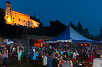 Neu war auch ein Trommelzirkus, bei dem möglichst viele Gäste  mitmachen sollten. Alle die mitmachten, konnten die Urgewalt des ältesten Musikinstruments hautnah spüren. Das Feuerschauspiel mit den Feuermachern, Millennium Visions und allen Lagergruppenteilnehmern war der Höhepunkt. Riesige Feuerwolken, Funkenregen und Wände aus Glut bildeten die Kulisse für diese magische Welt, in der schöne und schreckliche Wesen mit Tanz, Artistik und viel Feuerzauber das Publikum entführt haben, um mit ihm das Geheimnis des Feuerberges zu lüften. Der Schatz im Feuerberg ist ein Feuermärchen in dem es um die Reise eines jungen Mannes geht, der auszog um ein ganzes Volk von der Knechtschaft seines gierigen Königs zu befreien. Unterwegs begegnet er seinen eigenen Ängsten, Wünschen und Leidenschaften in Form von gefährlichen Aufgaben: wilde Krieger, schöne Maiden, bösartige Feuerdämonen und viele andere harren seiner. Große Feldschlachten konnte man am Samstag beobachten. Trotz der großen Hitze hielten sich die Ritter tapfer. Am Ritter Sport Turnier konnten alle Besucher teilnehmen. Mit Pfeil und Bogen, Schwert und Lanze konnten Mutige versuchen den Titel, Edler Ritter zu Ortenburg zu gewinnen. Bei der Siegerehrung am späten Nachmittag bekam der Sieger ein Spanferkel. Wer noch nicht genug hatte konnte am Abend das Konzert von Furunkulus miterleben. Trotz Hochsommerlichen Temperaturen lockten die Ritterspiele an den 4 Tagen wieder tausende Besucher an. Der Höhepunkt am Sonntag war der  große Umzug durch den Markt Ortenburg.     Quelle: Millennium Visions. Foto – Reportage von Peter Georg Laudi